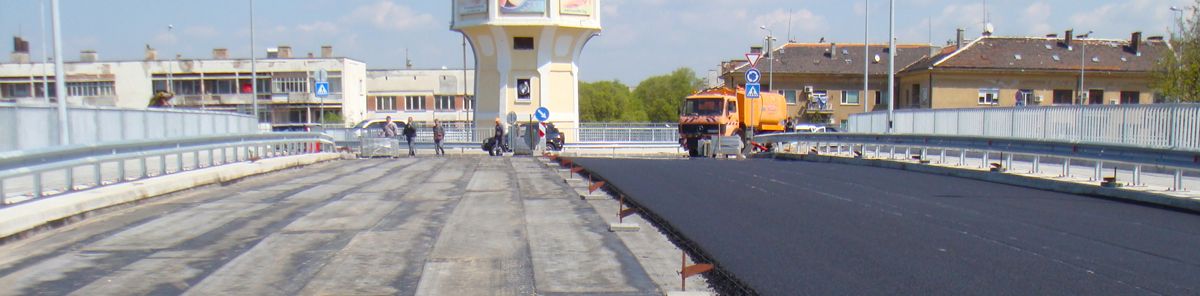 Road surface on railway overpass in Dimitrovgrad, Bulgaria, waterproofed with the special membrane APP Gemini Ponti specially designed for application on bridges and viaducts.