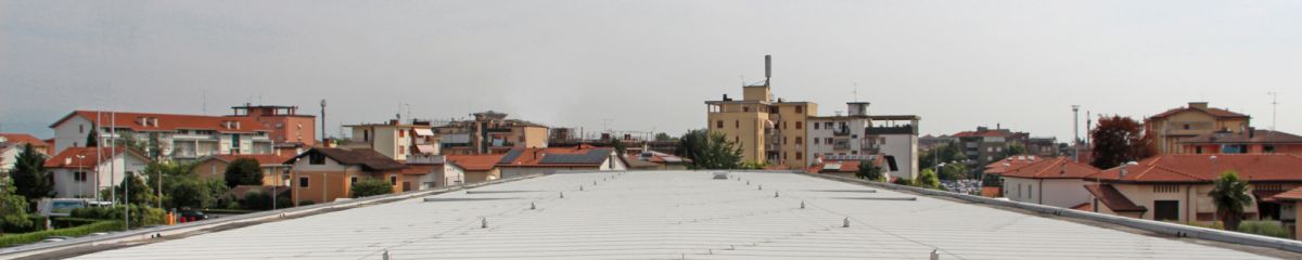 Waterproofing on industrial building in Pordenone made with the N.E.W. system – Never Ending Waterproofing, complete with Broof (t2) fire protection and reflective mineral finish Reflect Protection.